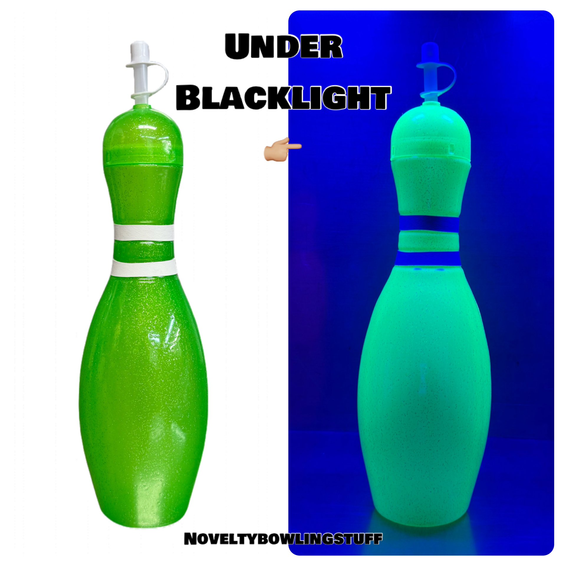 Our 32 ounce bowling pin water bottle 6 pack in green is the perfect addition to your bowling themed birthday party or event! They come in 9 colors: blue, green, pink, purple, orange, red, black, white & clear. All colors glow under blacklight (except Black & Clear). Order the assorted pack and receive our six most popular colors: blue, green, pink, purple, orange & red. Or order 6 of the same color. For instance, 6 pack red or 6 pack blue. Want more color combination choices? Go to our main bowling pin water bottles page and order any color combination and quantity you choose. If you have any further questions please call or email us with your questions!