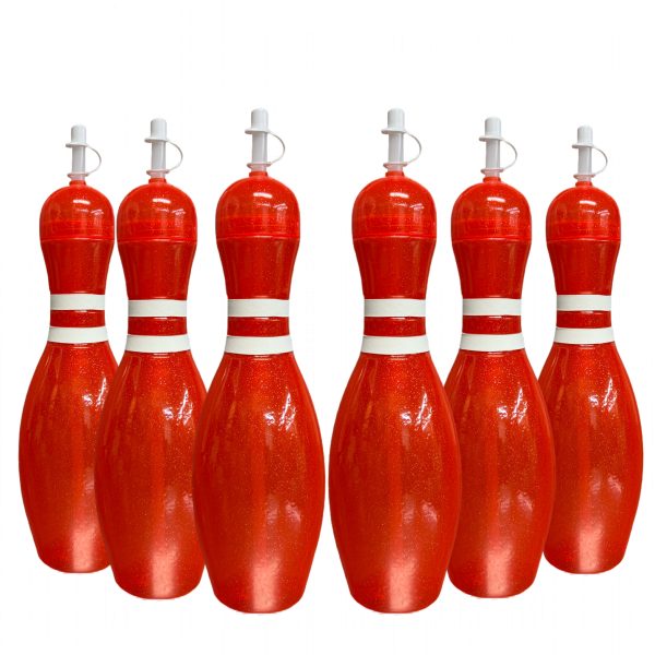 The bowling pins stand 13 inches tall with the straw, the largest on the market. The 6 pack of bowling pin bottles in orange are made with food grade plastic. *The stripes on the bottles are rubber grips. Proudly made in the USA!